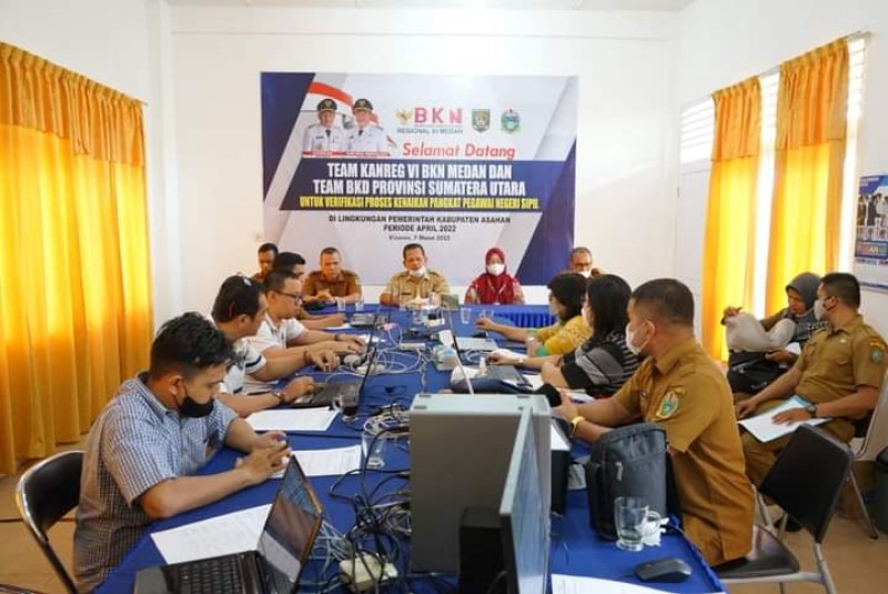 Dalam usulan ini ada 930 PNS golongan II/c –III/d (SK Bupati Asahan), 78 PNS golongan IV/a– IV/b (SK Gubernur Sumatera Utara) dan 3 PNS IV/c –IV/e (SK Presiden) akan diverifikasi oleh Kepala Kantor Regional (Kanreg) VI BKN Medan yang hari ini telah hadir di Kantor BKD Kabupaten Asahan.
