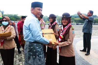 SIGAPNEWS.CO.ID | ASAHAN - Bupati Asahan H. Surya, BSc lepas kontingen Jambore Nasional XI Cibubur dengan jumlah peserta sebanyak 32 orang yang terdiri dari 16 putra dan 16 putri.